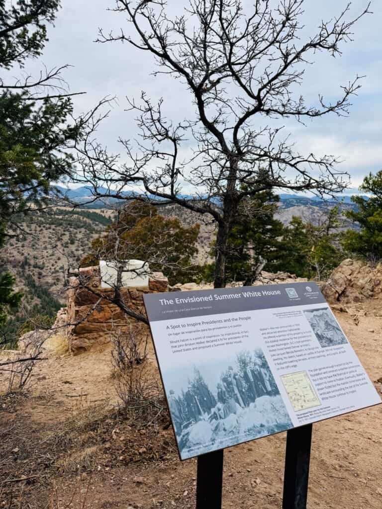 I was attracted to this hike because of the unique landmarks it contains – a mansion and a “president’s summer house” – two things you don’t find on many hiking trails! The mansion was built atop Mount Falcon Park in 1911 and tragically burned down in 1918 due to a lightning strike. All that remain are its rocky ruins. I found the ruins to be a tragically beautiful site to envision what once was.