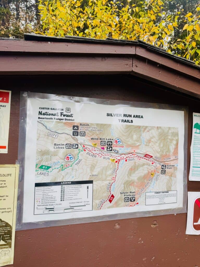 The Silver Run Trail located in the southwest corner of Red Lodge Montana. It is a 5 mile loop along the West Fork Rock Creek – walking 2.5 miles to the west and then 2.5 miles back east. The space between the west and east (or upper or lower) ranges from 20-30 feet with many connection “trails” throughout the length of the trail.